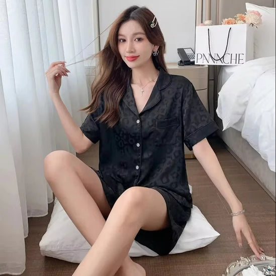 1 Set Women's Elegant Lounge Set, Plus Size Satin Striped Button Up Long Sleeve Shirt & Pants Pajamas