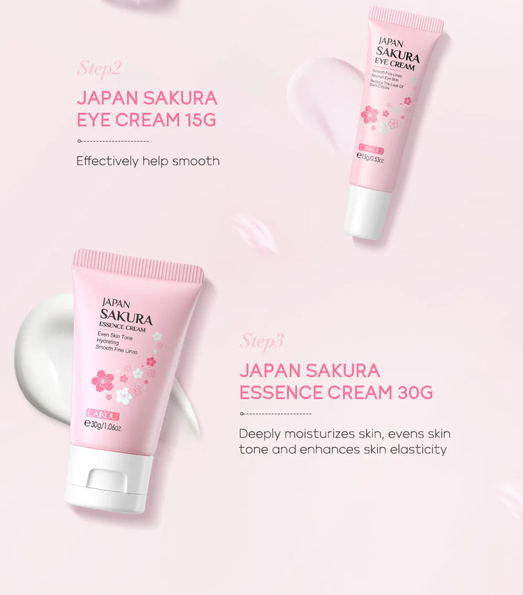 3pcs/set LAIKOU Vitamin C 24K Golden Sakura Skin Care Sets Face Cream Serum Eye Cream Moisturizing Anti Wrinkles Face Care Kit