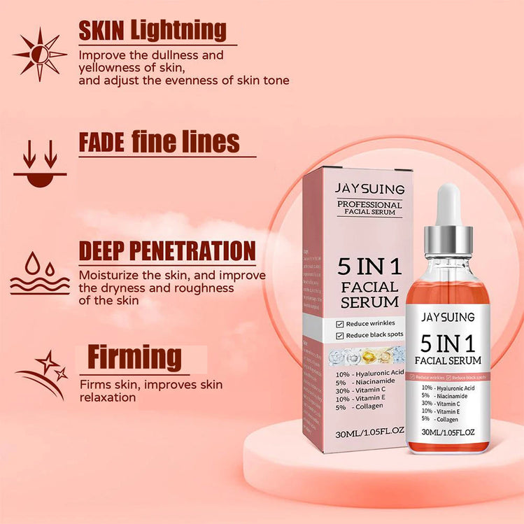 5 In 1 Fade fine lines Firming Face Serum Moisturizing brightning Vitamin C Hyaluronic Acid Facial Serum Shrink Pores Skin Care