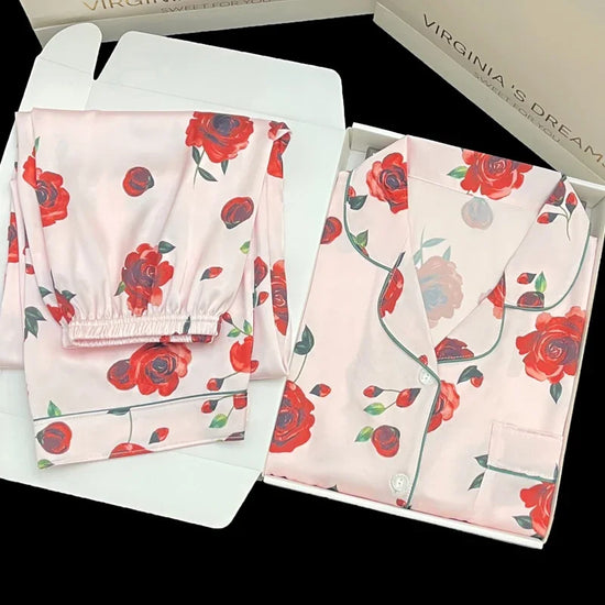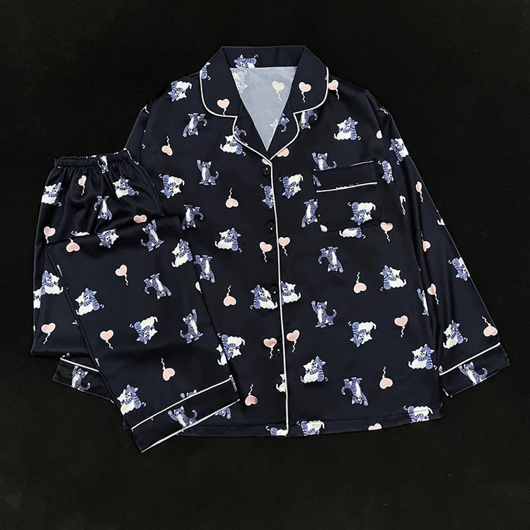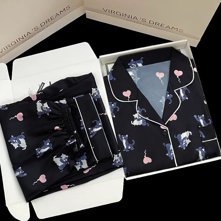 European Style Elegant Classy Fashion Trendy Female Lounges Aesthetics Print Spring Autumn Sleepwear for Women Y2k Sweet Pajamas