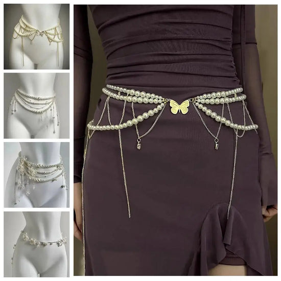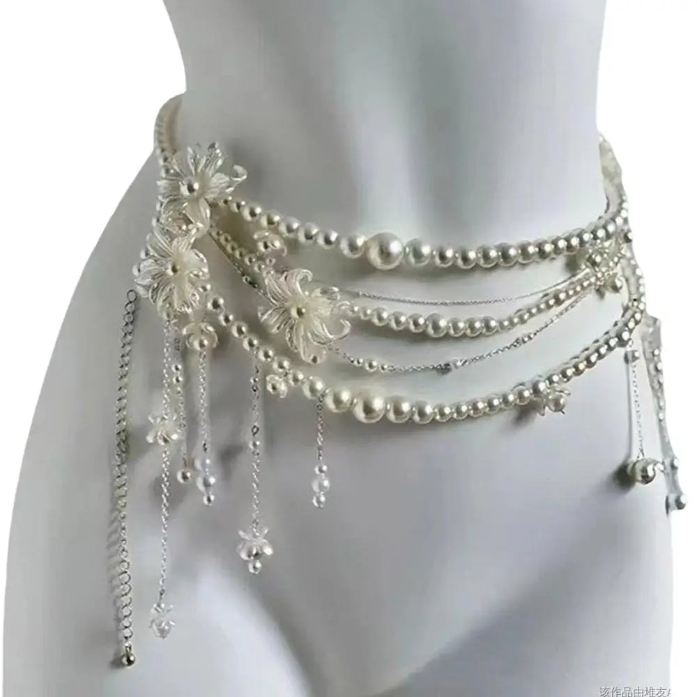 Fashion Y2K Retro Multilayer Pearl Waist Chain Belt For Women - Stylish Body Jewelry Accessories For Party & Casual Wear