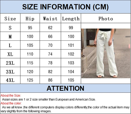 Women Long Pants Casual Loose Cotton Linen Elastic Waist Loose Straight Pants Female Elastic Waist Wide Leg Trousers Streetwear
