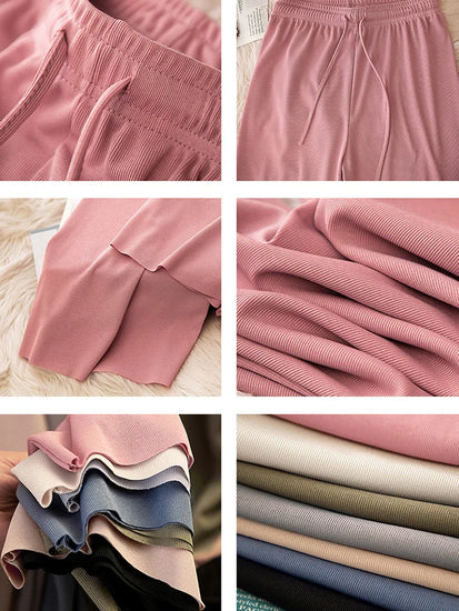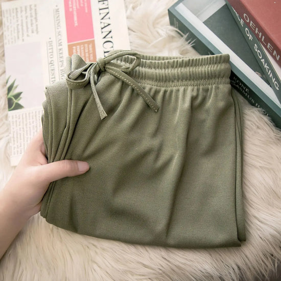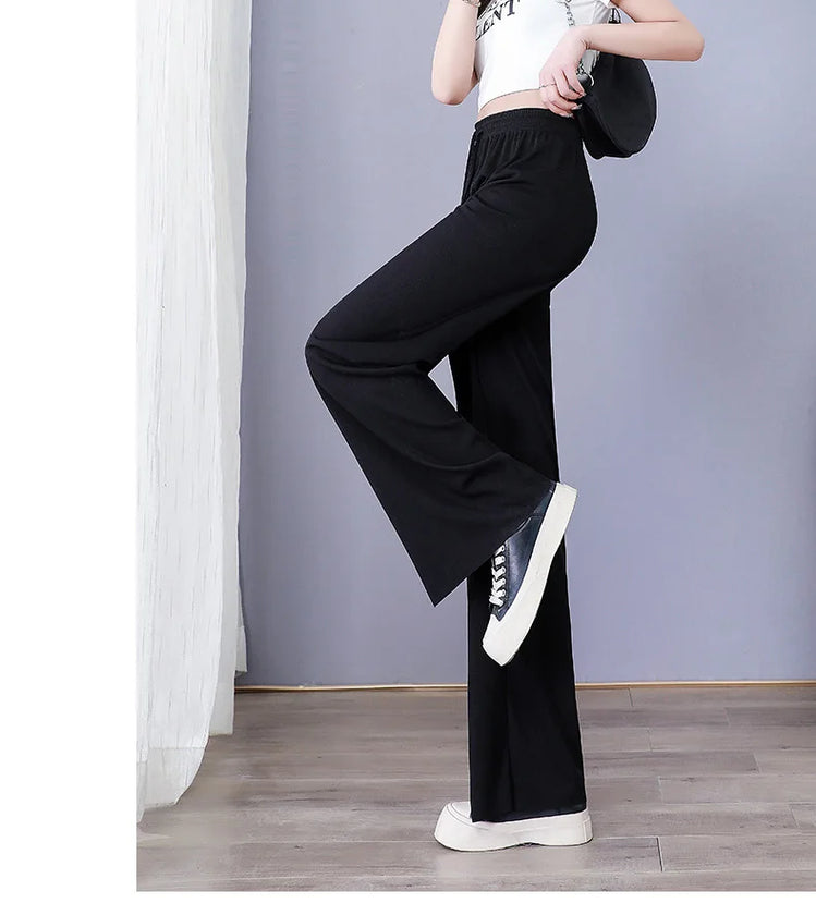 Women Long Pants Causal Elastic Waist Loose Basic Long Trousers For Female Spring Summer Wide Leg Long Pants