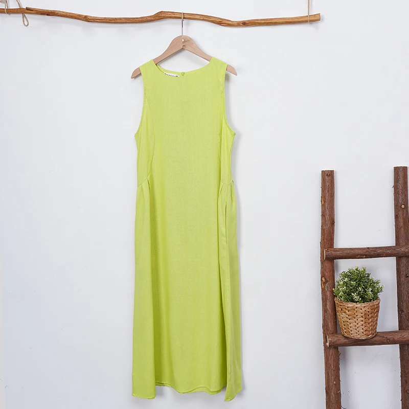 Women New Dresses Cotton Linen Sleeveless Loose Casual O-Neck Long Dress Robes vestidos casuales платье женское