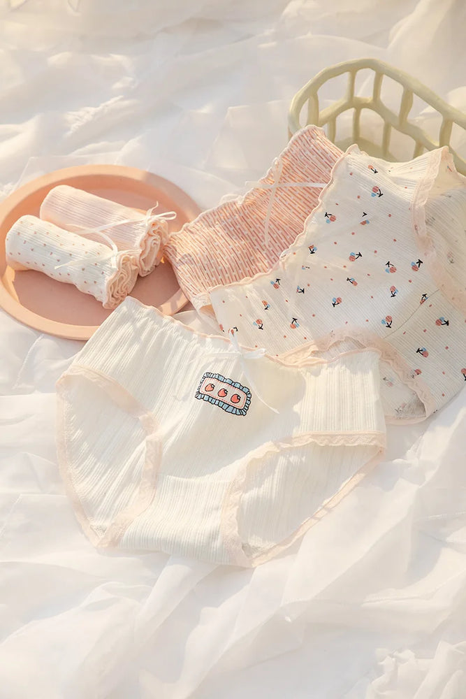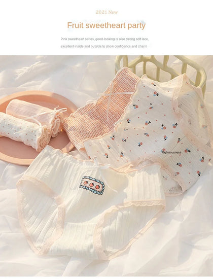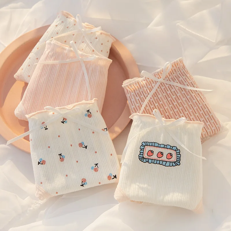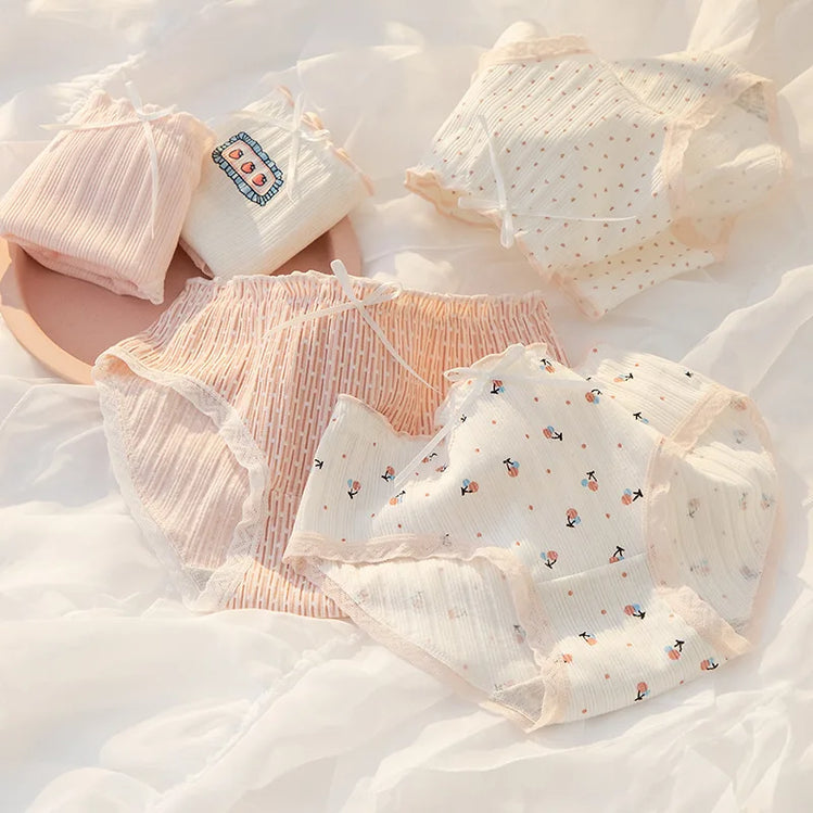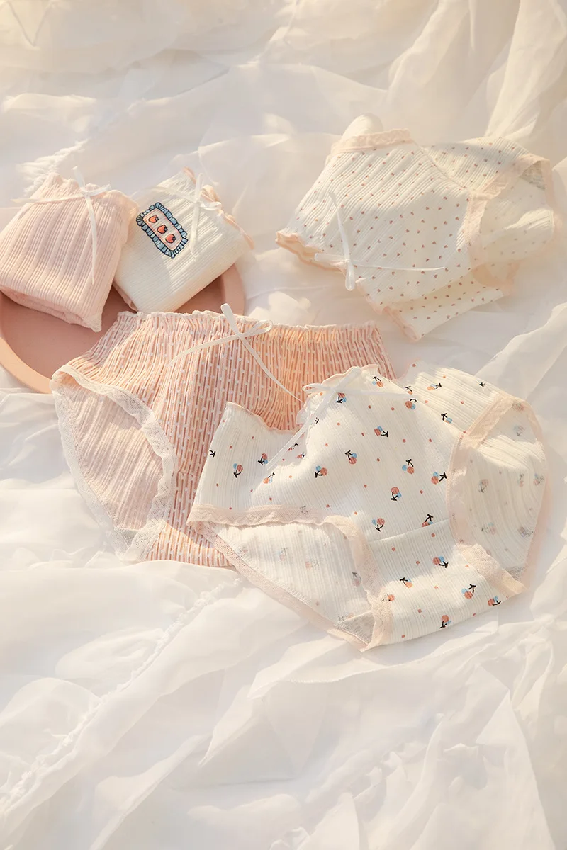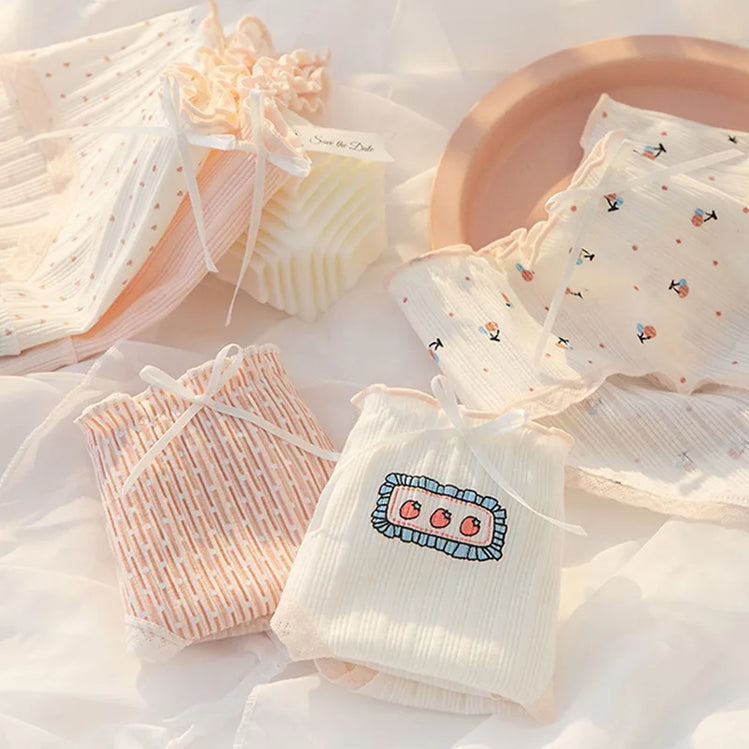Women's Cotton Underwear Lovely Girl Bow Panties Sexy Lace Panties Mid Waist Seamless Comfort Briefs Female Lingerie