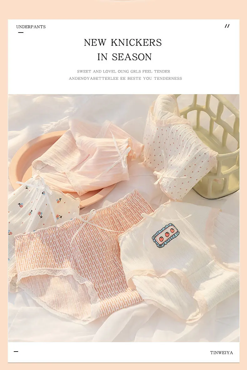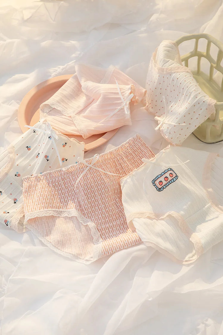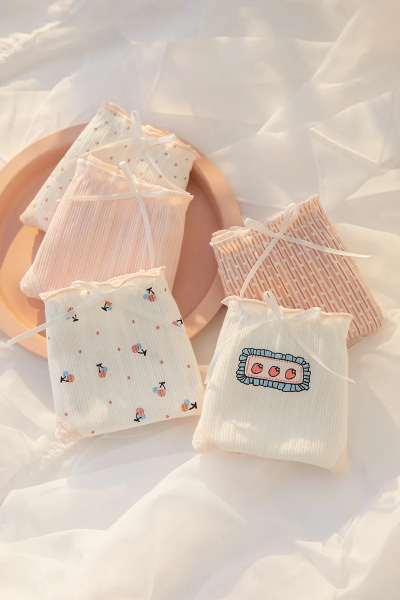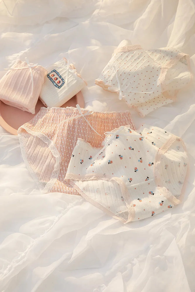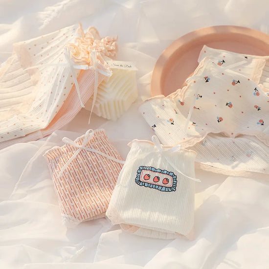Women's Cotton Underwear Lovely Girl Bow Panties Sexy Lace Panties Mid Waist Seamless Comfort Briefs Female Lingerie