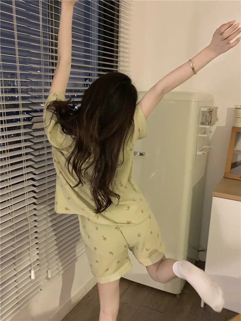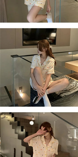 Women's Pajamas Set Foam Cotton Sleepwear Button down Tops and Shorts Pajama 2 Piece Suit Femme Nightwear Loungewear for Summer